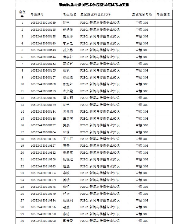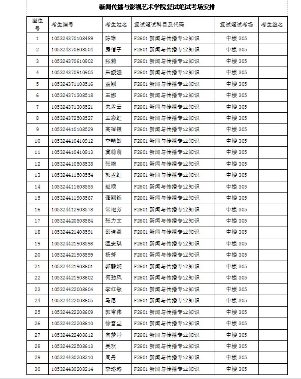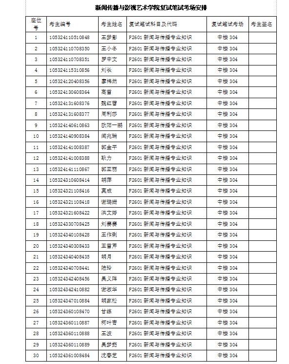 新闻传播与影视艺术玩偶姐姐 复试笔试考场安排