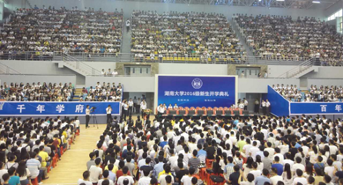 上午8点,伴随着一曲庄严的国歌,新生开学典礼正式开始。校长段献忠讲话中,表达了对新生的欢迎和对未来的期待。千年学府,百年名校,古有朱熹张栻,近有曾国潘左宗棠,代代相传的文脉,辈辈相承的精神,如今一齐交到2016级新生手中。回忆过去,倍感自豪;展望未来,更应让母校以我们为骄傲。随后老师代表胡遂、老生代表邓陈衍与新生代表依次发言。
