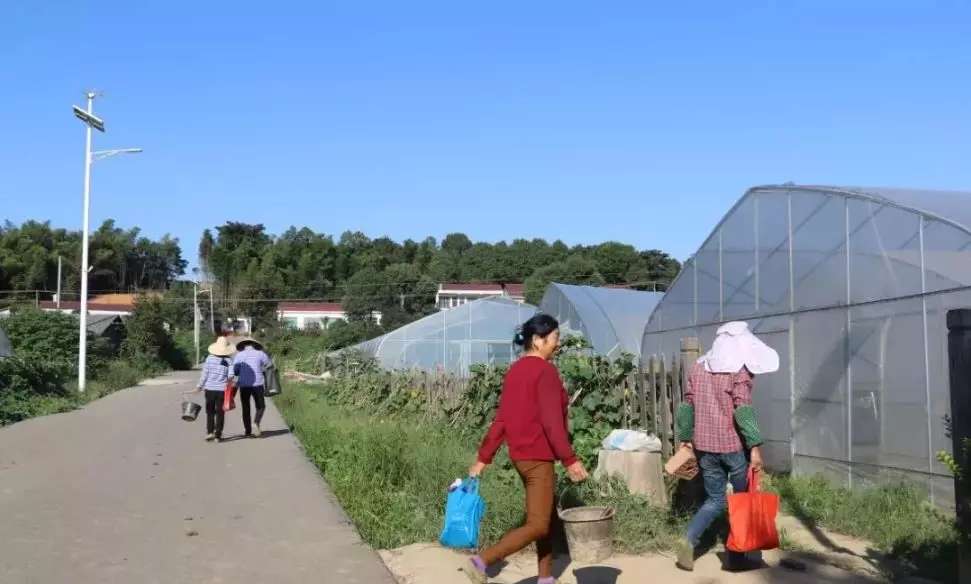 天色渐暮,蔬菜基地劳作的村民们也收拾起锄具回家,嘴边还挂着说不完的家常里短,时不时爽朗的笑声顺着傍晚的徐风在农园飘荡。或许晚饭过后,忙完家务活,她们又三三两两地出来,沿着亮着路灯农园小道,在村子里散散步,乘乘凉……
