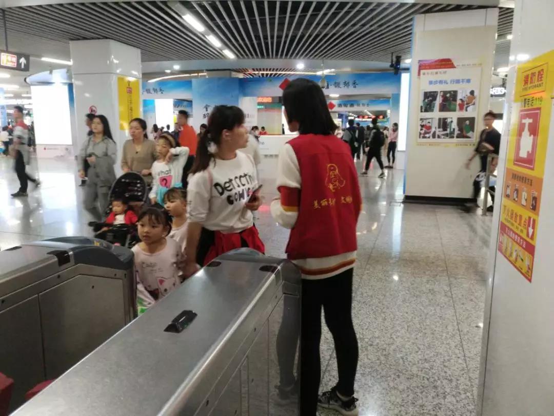 地铁志愿者活动属于校青协的指导范畴,所以除了新影院还有别的院参与了活动。部员王旖在这次活动中和其他部员一起与数玩偶姐姐