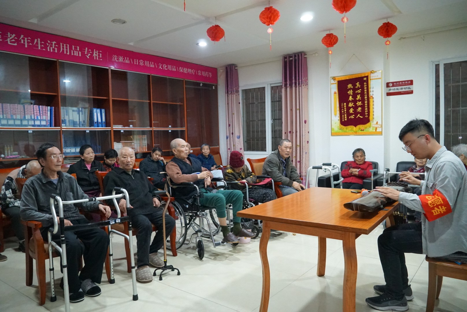 组织志愿者在冬瓜山康乃馨养老中心开展了“青春暖夕阳”第五次志愿活动。本次志愿活动以养老教学为主题,志愿者与老人们交流养生小知识,为老人们讲述起居、饮食、运动等方面的健康知识,通过表演、小游戏等互动,拉近彼此间的距离。