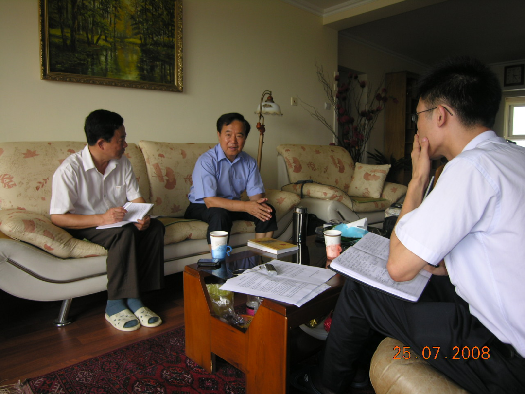 王于化的老同事、铁道部原部长傅志寰(中)院士在接受采访时,对老王的科研工作赞不绝口。(2008-7-25北京)