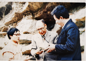 大地构造研究所工作。曾多次随同他前往湘中沧水铺、广东从化温泉、昆明西山、中缅边境的滇滩铁矿、湘南铜山岭、广西平桂锡矿、湘西北张家界进行野外地质科研考察。亲眼目睹陈先生勤观察、勤记录、勤思考的严谨风格。野外考察期间,他坐上前往目的地的车上,他一定会掏出一个小小的笔记本,把观察到的车窗外山峦地貌素描下来,并详细注明时间、地点、气候特征等等。下车后,地质锤、地质罗盘和放大镜“三大件”都放在挎包里。实地观察时,一旦发现有价值的岩石、矿物或有标志意义的地层、地质构造,就采集标本、还要测量、素描、拍照。他曾不止一次地对我说;“搞地质的三大件,一件也不能少。”干地质的都知道,锤子用来采集标本,罗盘不但可用来辨别方向,还可测量地层倾斜角度和断层走向,放大镜则是用来仔细观察岩石结构和矿物的微细特征。但我明白陈先生的意思:实践,再实践,实践始终是第一位的!