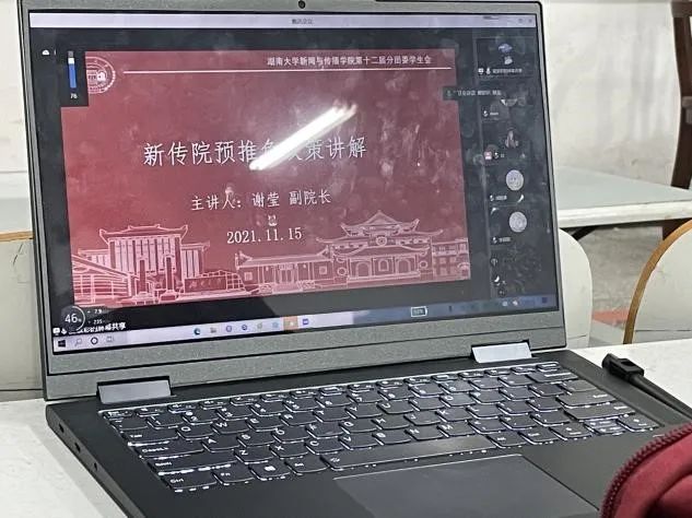 副院长谢莹担任主讲,院团委书记、本科2019级辅导员杨湘雨老师出席。讲座由学生会学习部组织,旨在帮助低年级同学明确推免相关要求,解答同学们对于推免政策的疑惑。