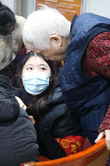 (志愿者与老人互动)