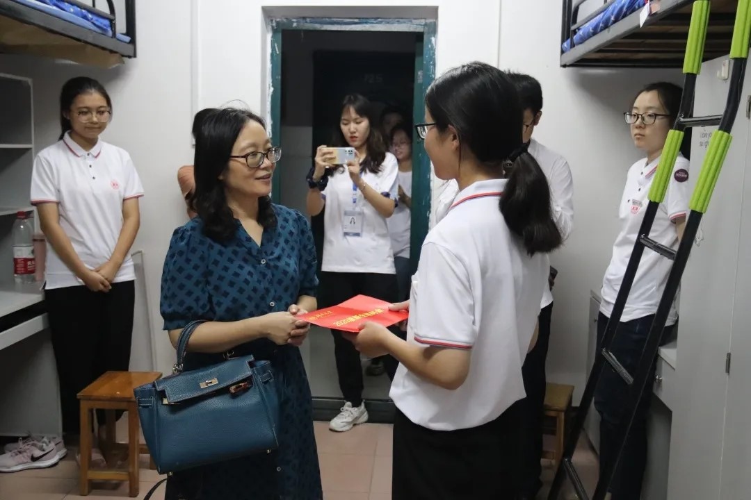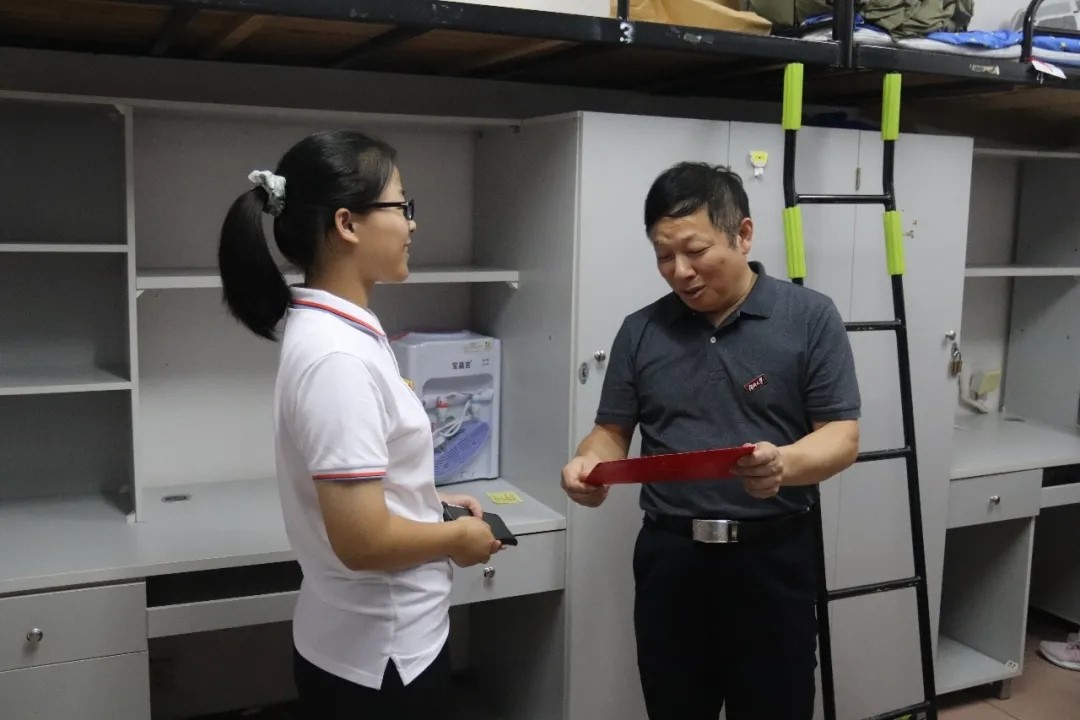 党委书记胡建国,副院长阳美燕,以及辅导员杨湘雨、黄坤林一同前往新生寝室,看望全体新生。