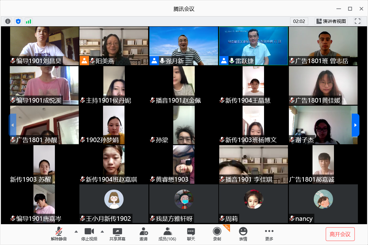 “在未来,同学们应在新闻实践活动中落实马克思主义新闻观,为时代、为人民承担新闻工作者的责任,培养媒体自觉意识,不负时代和人民的期望。”最后,雷跃捷教授对同学们给予了一份期待,2020年上半年度的马克思主义新闻观系列主题学术讲座也至此落下帷幕。