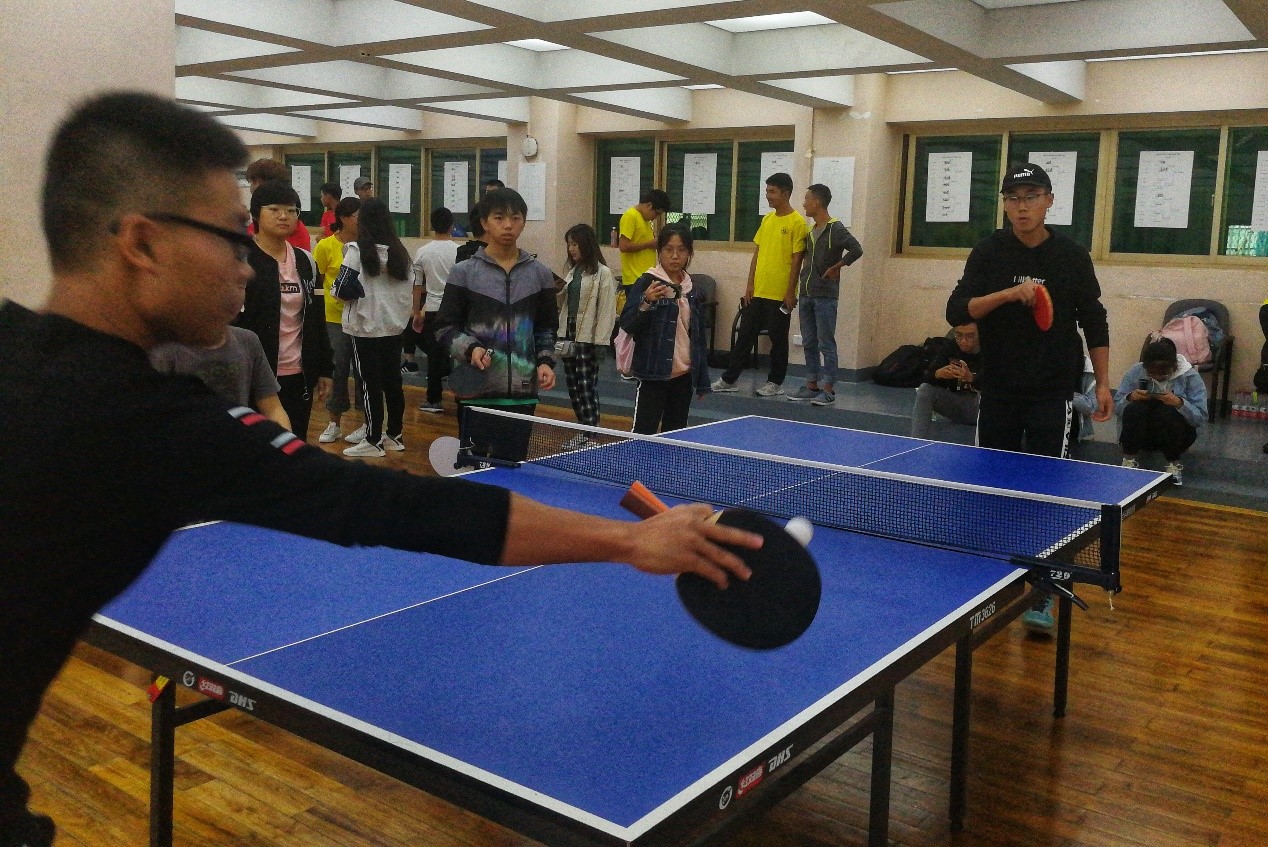新生杯乒乓球个人赛在体育馆举行。此次比赛分为男单、女单两个板块,采用淘汰制,三局两胜者晋级。玩偶姐姐