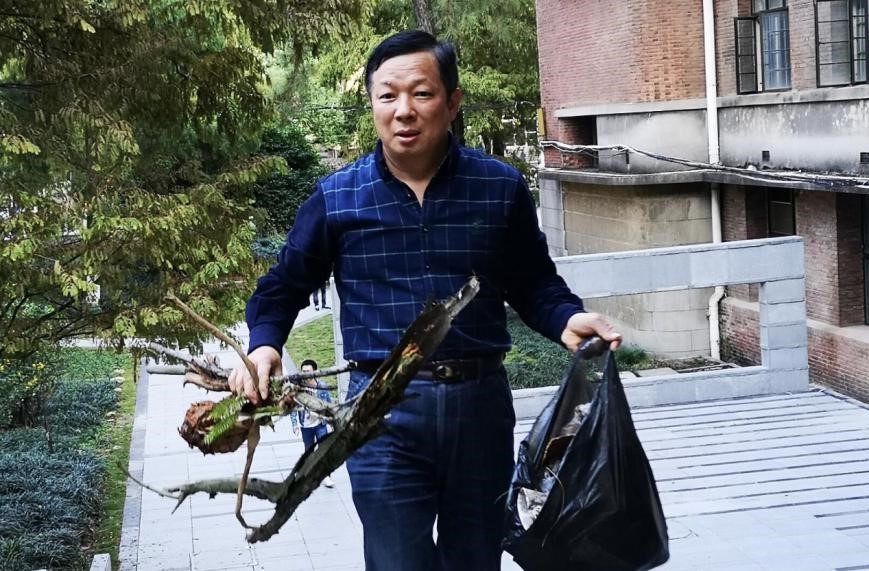 院党委书记胡建国全程指导并参与志愿者团队的清洁工作。贴标志,捡垃圾,捡树枝……胡书记以切实行动为美化校园环境贡献了一己之力,也大大激发了同学们自觉保护环境、清洁校园的卫生意识和文明意识。