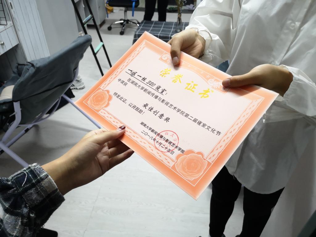 为获奖寝室颁发了获奖证书以及精美的纪念品。