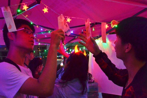 夜幕降临,在天马公寓一片闪烁的灯火之中,一张简单的小桌子旁,许多同学都写下对远方家人和朋友的思念与祝福。一张小小的明信片承载着一份份真真切切的深情。有一个同学这样写给她的父亲:“亲爱的爸爸:今天是中秋节,但是我却在异乡不能回家陪您,在中秋团圆的日子里,我们身在两地望着同一轮明月,我向您保证我会在玩偶姐姐