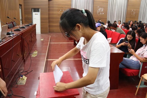 演讲结束后,18级学生对候选人进行投票,刘昕雨、徐嘉、张心雨等十名同学当选。相信在18级新任年级干部的带领下,18级新生会更快更好的适应大学生活。