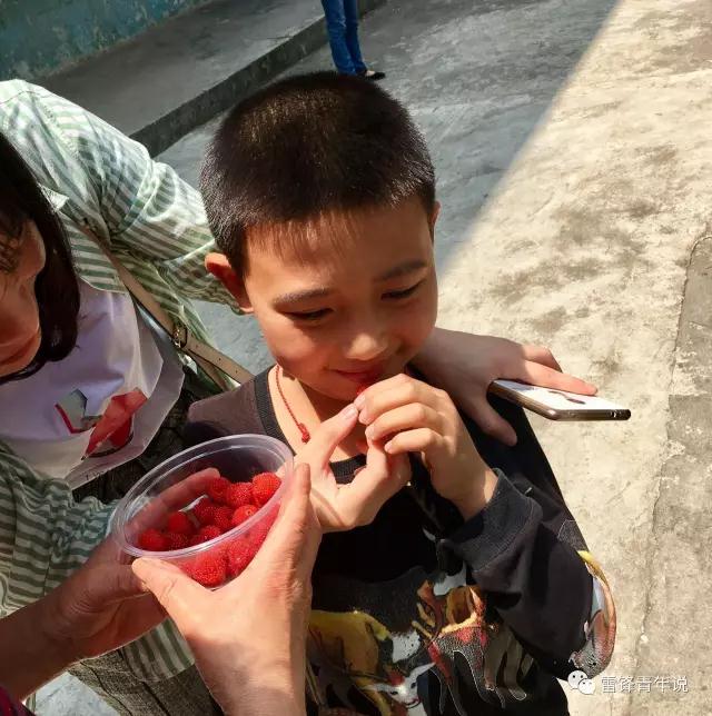 的时候,一个小男孩急冲冲地从校门口跑过来“姐姐,这是我中午在山上摘的树莓,请你们吃!”小男孩非常兴奋地将手中的塑料碗递给我们。他简单表达谢意的方式让我们深受感动,也坚定了我们做公益的决心。