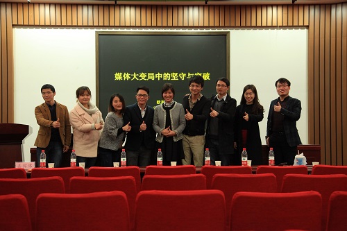 欧家锦首先对程书记给予这次交流的机会表示感谢,紧接着带领同学们回顾他在南方报业的工作经历,从内容选题到媒体担当,他为同学们勾勒出了一个传统媒体人光辉的职业形象。谈到个人转变,他从职业媒体人的角度对六年来三家纸媒的工作经历进行了分享,并引导同学们深度地剖析了媒体行业的现状。