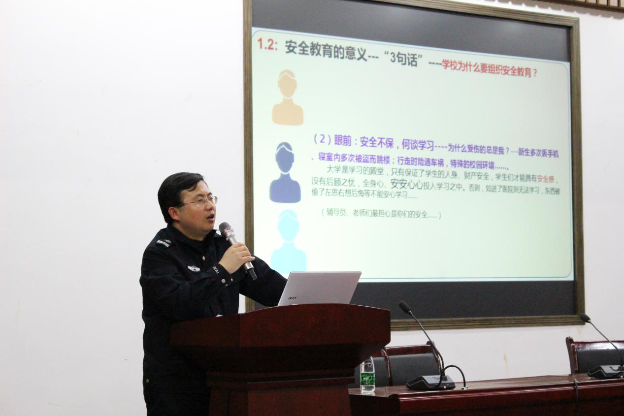 保卫处的黄发林老师。新影院2015级全体本科生以及辅导员刘佳老师参加了本次讲座。