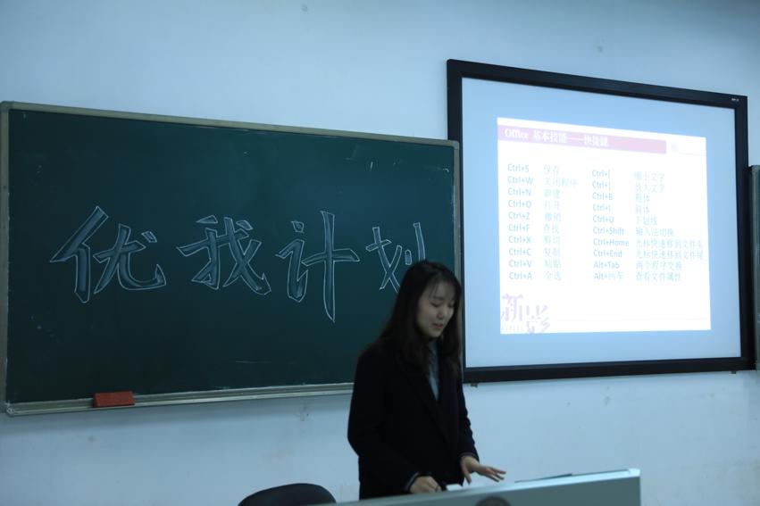 “优我计划”第一期培训在北楼101教室进行。本次培训的主题是“Office技能培训”,由学习部副部长王建新担任主讲人,新影院部分学生到场。