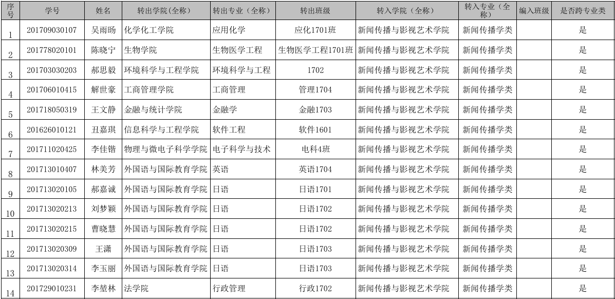 请以下转入新影玩偶姐姐 的同学,于2018年3月19日(星期一)下午2点30分到北楼3楼会议室307室进行面试;有部分学生未交材料(成绩单、排名、思想政治证明、申请书),请面试时将相关材料带过来。如果不参加面试,视为放弃,过期不再受理。