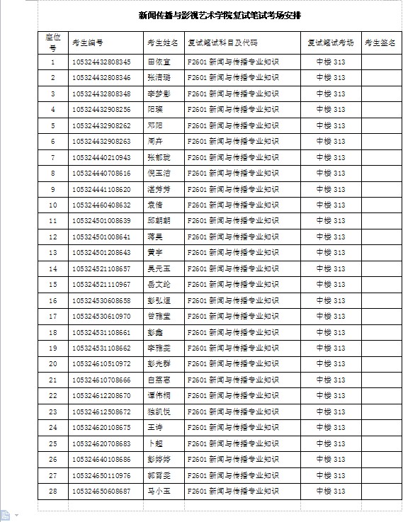 新闻传播与影视艺术玩偶姐姐 复试笔试考场安排