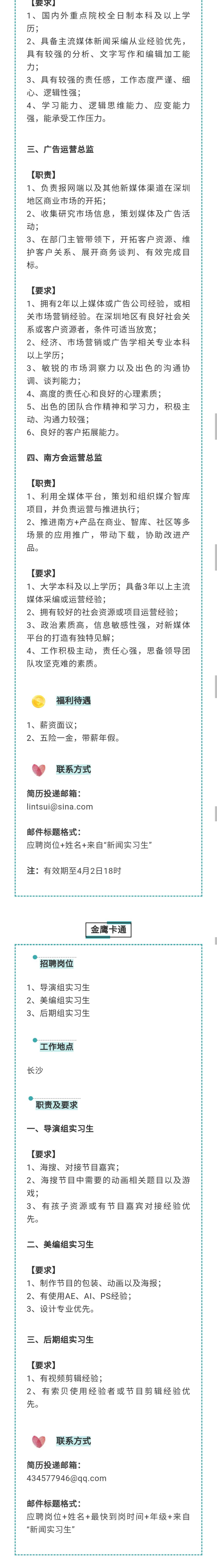 全职+实习 | 我们视频、财经杂志、红板报、新浪广东、南方日报、金鹰卡通等【共6家】