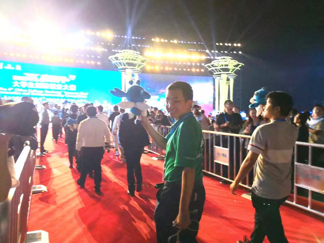 2018年10月13日,第四届互联网+全国大学生创新创业大赛颁奖典礼在厦门大学上弦场如期举行。魏啸宇作为“游鲜生”团队的项目代表,穿着醒目的绿色文化衫,挺着胸脯,站上了“青红之旅”赛道的金奖颁奖台。