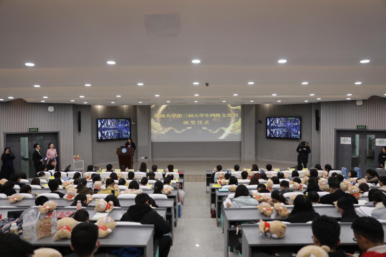 第三届网络文化节颁奖仪式在复临舍报告厅举行。本次仪式对优秀微电影类、优秀动漫、优秀摄影、优秀音频、优秀网文、优秀短视频以及其他类优秀奖品、十佳新媒体学生达人、十佳微信公众号、十佳易班学生工作站以及网络文化节优秀组织单位等一一进行颁奖表彰。