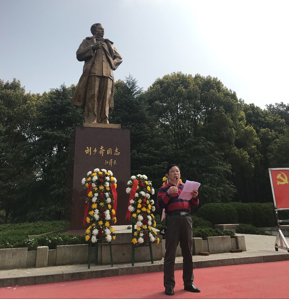 出发,于上午10时许抵达刘少奇故里。参加本次活动的教工党员和教职工列队向刘少奇铜像敬献了花篮,院党委书记胡建国、院长彭祝斌整理了花篮缎带。接下来,全体教工党员肃立刘少奇铜像前,向伟人三鞠躬,表达缅怀之情,并庄严高举右手,面向党旗重温了入党誓词。
