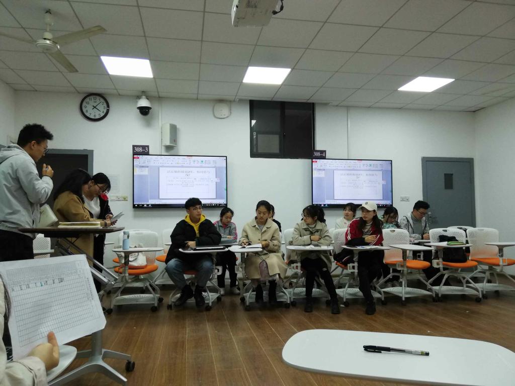 2019年4月12日下午,新传1802班全体同学在老师的带领下于综合楼308智慧教室举行了辩论比赛。辩论赛分上下两场,按照班级内部的四个学习小组分队。本次辩题来源于两会热点议题“是否支持提前法定婚龄”。现场选出主持人后,比赛正式开始。