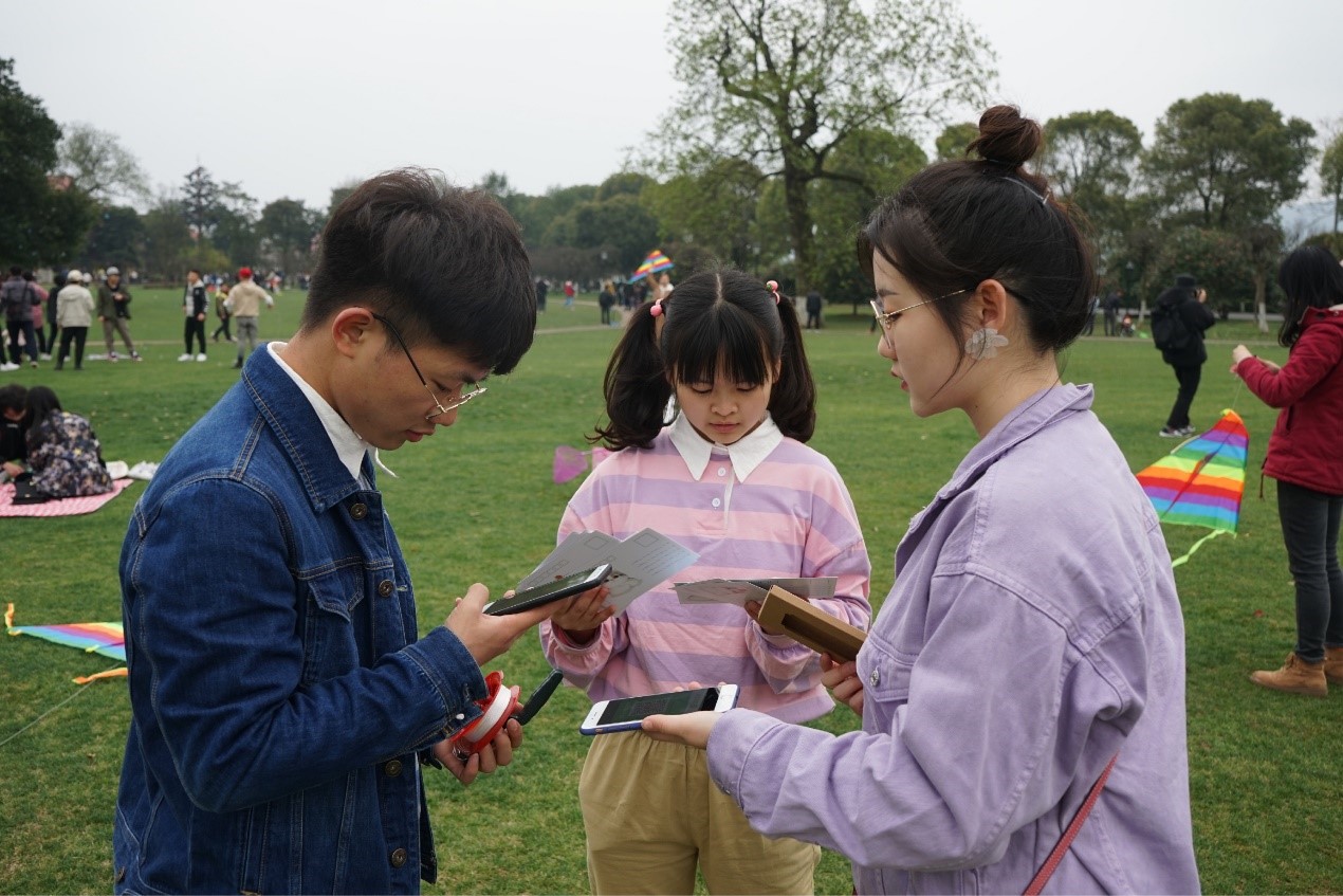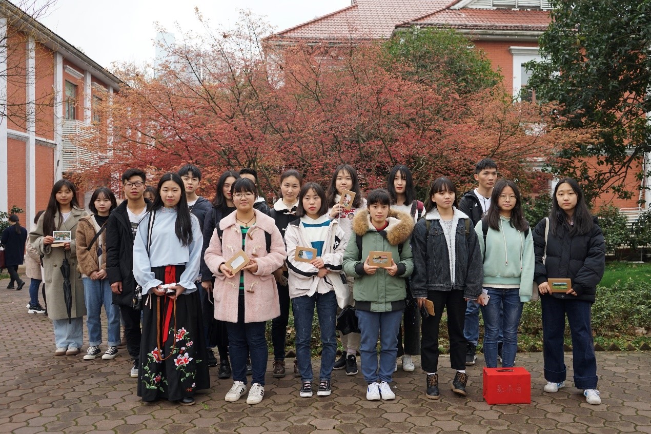 下午两点半,全班同学在橘子洲头集合。取得物资之后,3—5人一队自行组队开展活动。此次活动以明信片义卖为基础,明信片上印着玩偶姐姐