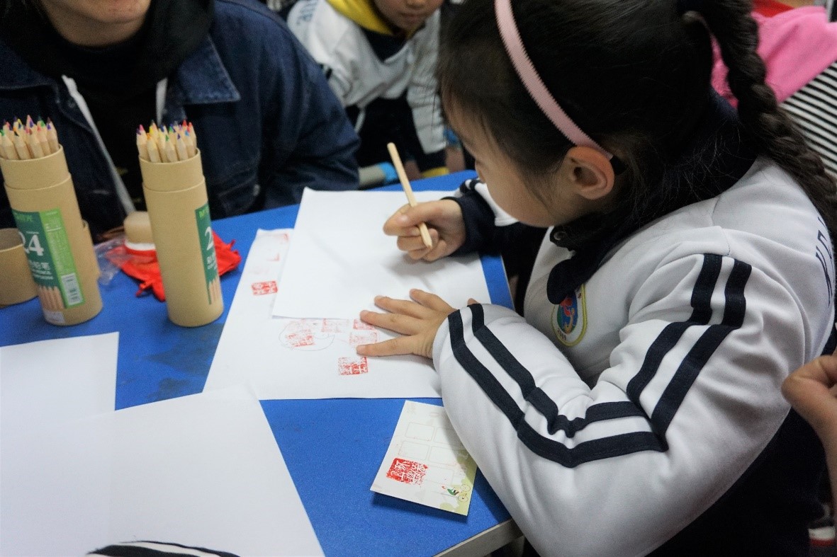 集齐六个印章后,小朋友们兴高采烈地到讲台兑换了志愿者们精心准备的小奖品,先集齐的小朋友骄傲的带起了属于自己的徽章。