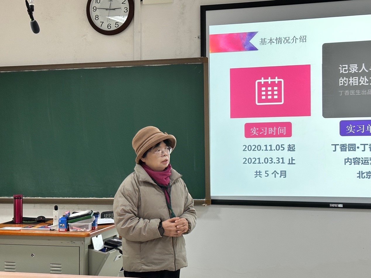 在根置理念阶段,吴月娥老师指出,“学中做,做中学”的理念是新闻传播学科教育的重要特点,强调实践与理论学习的紧密结合,并建议同学们提升专业技能、培养实践能力、促进知识转化、增强竞争力。在规划目标阶段,吴月娥老师分别对同学们大一到大四每个阶段进行规划,强调大学四年晋阶实践不断线。在寻找路径阶段,吴月娥老师就“实习”话题展开了详细指导,并表示,“实践是一个试错的过程,重在过程中成长。”在收获成长阶段,吴月娥老师强调进行实习培训与提升专业技能的重要意义,指出要在“学与做”中长才干。最后在总结经验阶段,吴月娥老师殷切祝福同学们,勤动“四力”,笔耕不辍,勇往直前,前程锦绣!
