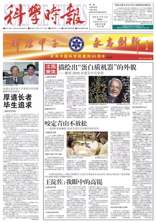 10月14日《科学时报》(现复名为《中国科学报》)1版