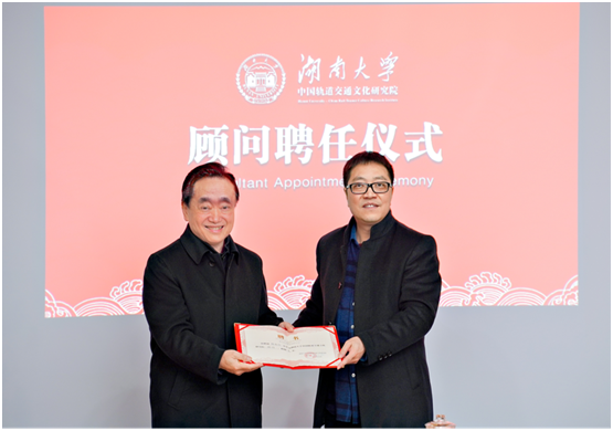 联合成立的产学研一体化平台,他很高兴接受研究院的聘任。他认为,文化是根和魂,植根于文化沃土上的研究院及其合作企业是幸福的,充满希望,未来无限,他非常乐意加入研究院年轻而充满活力的团队,愿为促进中国轨道交通文化的建设与发展贡献余热。