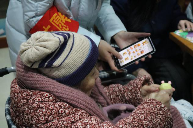 (志愿者与老人互动)