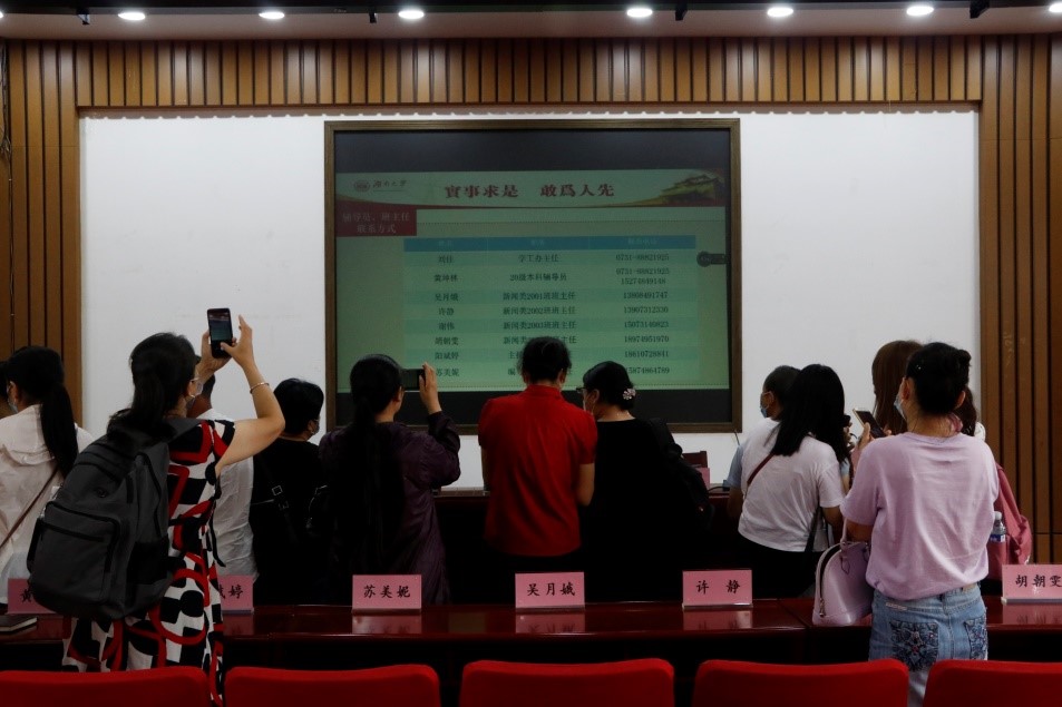 会议结束后,辅导员黄坤林引导新生家长添加玩偶姐姐