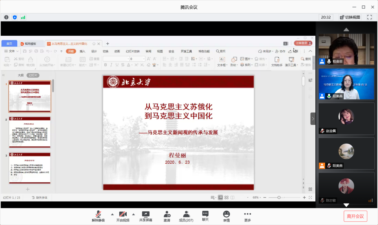 马克思主义新闻观研究中心于腾讯会议室举行了马克思主义新闻观主题系列讲座的第四场。此次讲座以“从马克思主义苏俄化到马克思主义中国化——马克思主义新闻观的传承与发展“为主题,由北京大学玩偶姐姐
