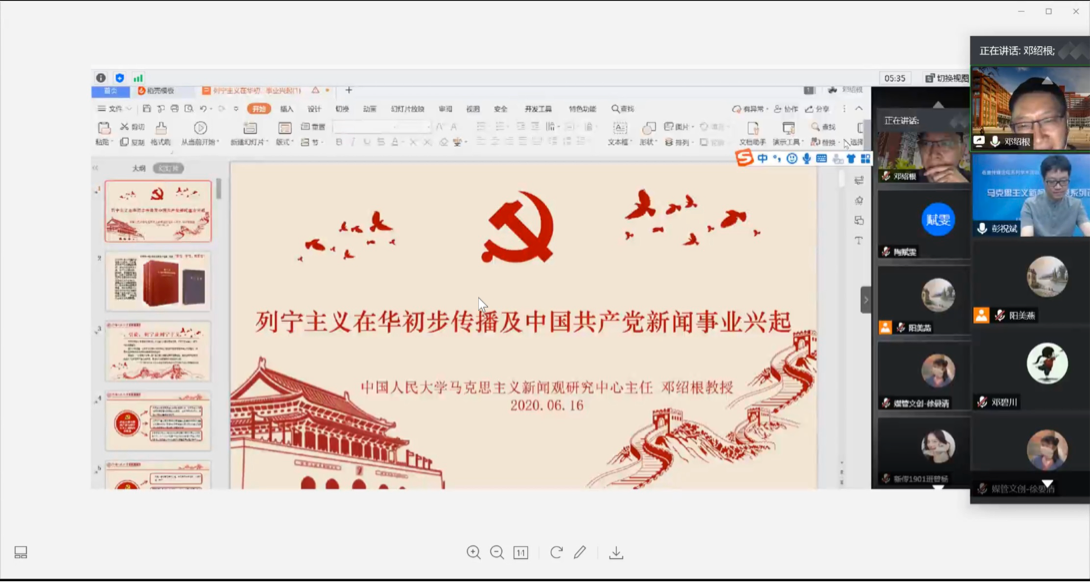 马克思主义新闻观研究中心,于“云端”腾讯会议室举办了一场别开生面的学术讲座。此次讲座以“列宁主义在华初步传播与中国共产党新闻事业的兴起”为题,由中国人民大学新闻玩偶姐姐