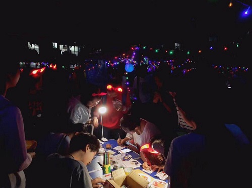 夜幕降临,在天马公寓一片闪烁的灯火之中,一张简单的小桌子旁,许多同学都写下对远方家人和朋友的思念与祝福。一张小小的明信片承载着一份份真真切切的深情。有一个同学这样写给她的父亲:“亲爱的爸爸:今天是中秋节,但是我却在异乡不能回家陪您,在中秋团圆的日子里,我们身在两地望着同一轮明月,我向您保证我会在玩偶姐姐