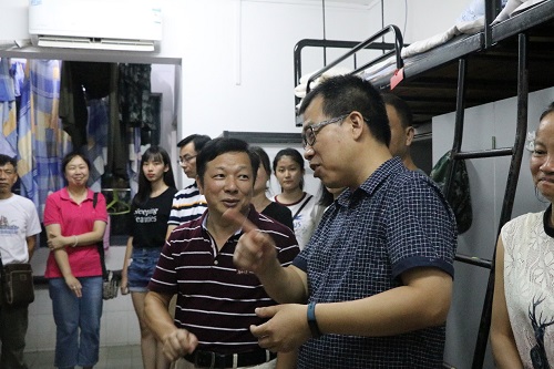 党委书记胡建国、党委副书记兼副院长程华、18级辅导员刘佳来到新生寝室看望新生及新生家长们。