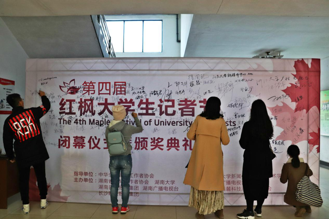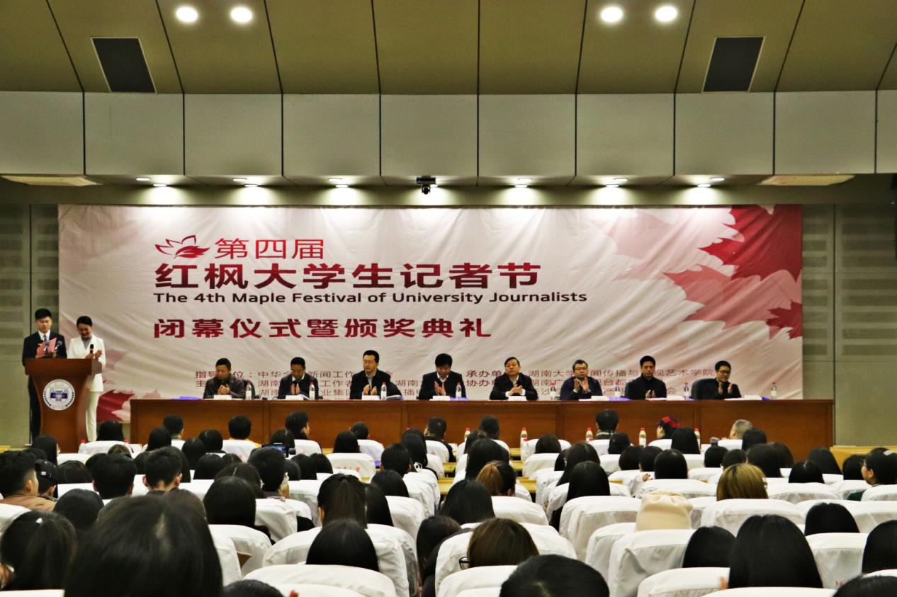 湖南省委宣传部副部长周湘宣布第四届红枫大学生记者节闭幕,为本届红枫大学生记者节的系列活动画上了完美的句号。