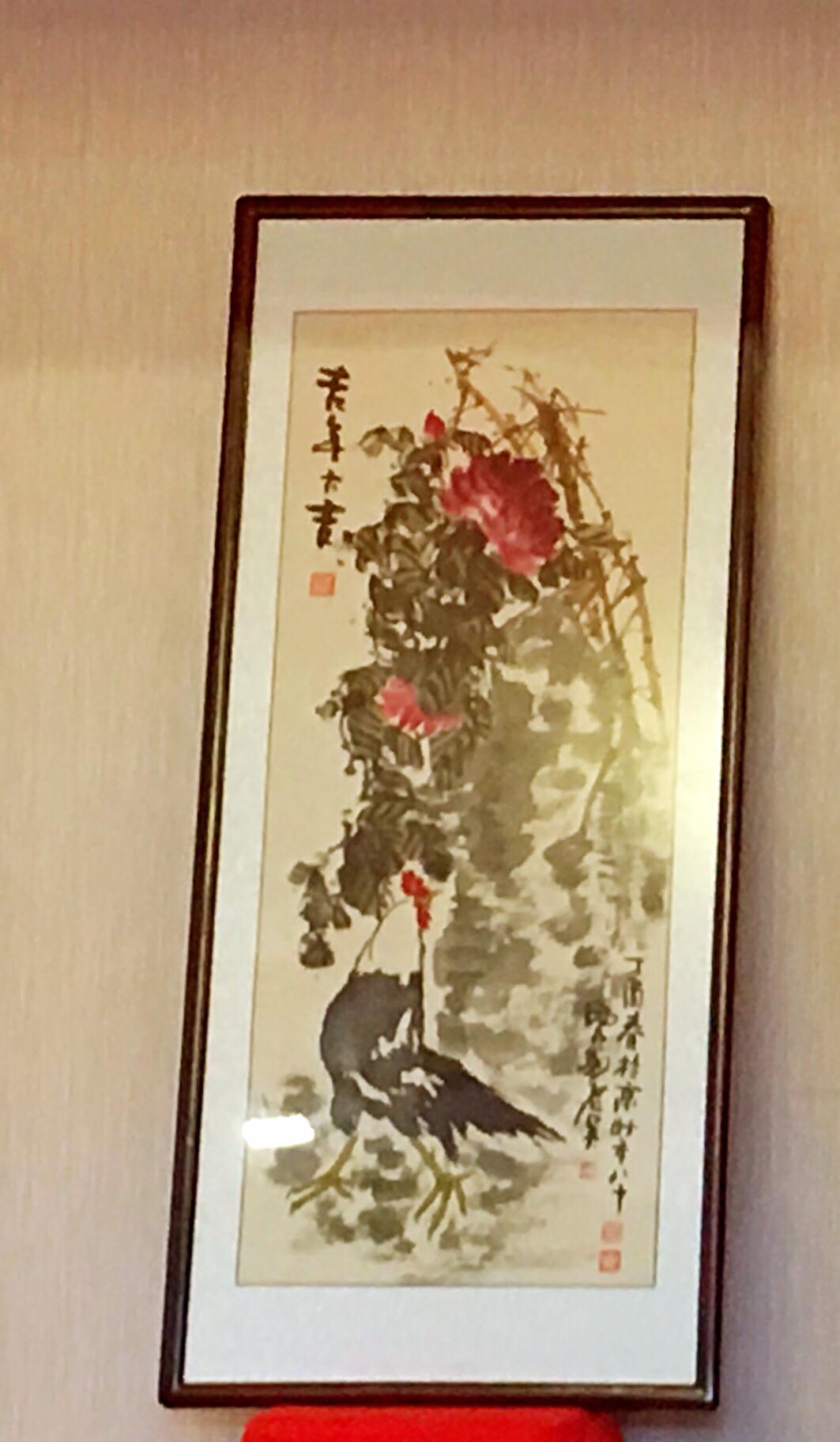 的国画作品《吉年大吉》。彭祝斌院长在解读这幅作品时风趣地说:“画中的两朵花和一个花蕾,是有寓意的。第一朵花是武汉大学新闻玩偶姐姐